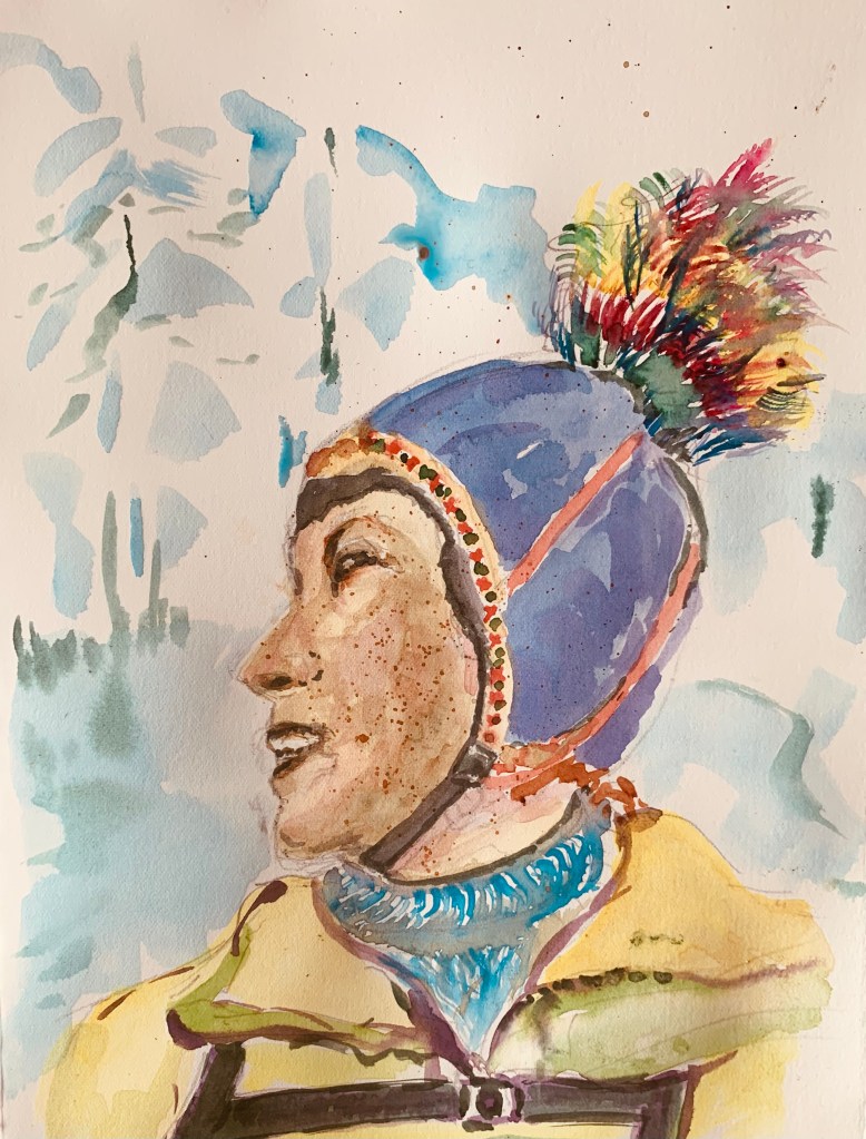 Back Country skiing in the Rocky Mountains near Sunshine. I loved that Toque. And telemarking down the slopes! Sold. Erla Mottram.