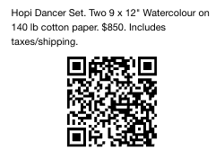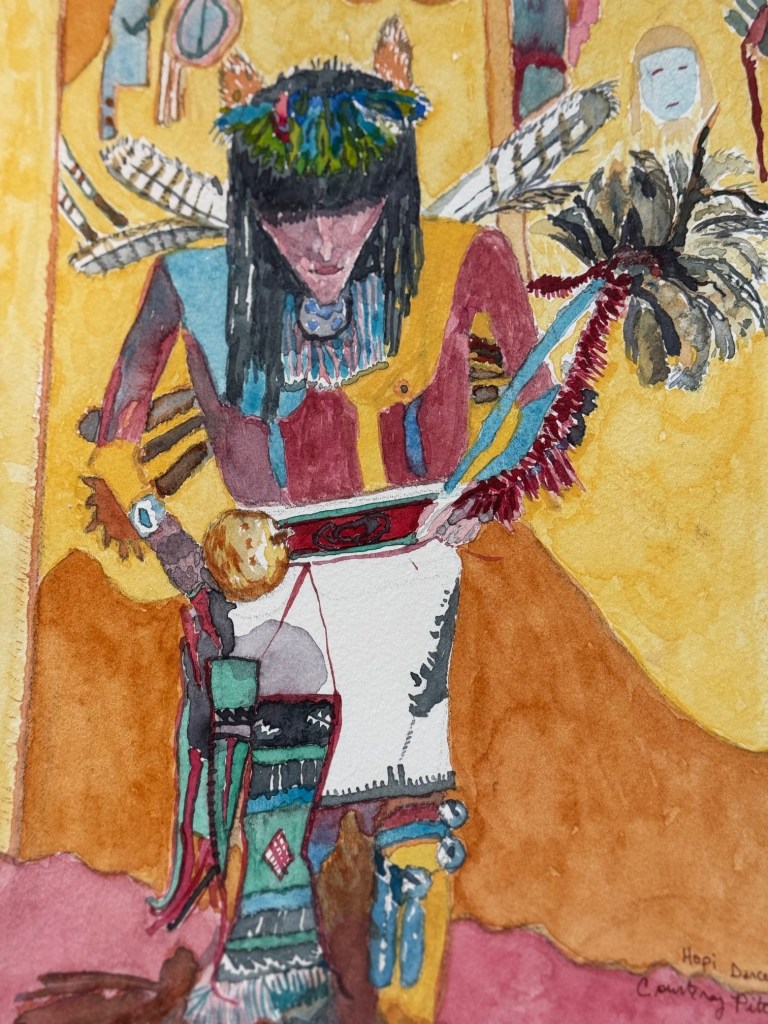 In 2013, Shawn and I travelled to Phoenix, Arizona and we were fortunate to attend the Arizona American Indian Festival. I took photos of this Hopi Dancer and it was a pleasure to paint him. Viewing the dance was a privilege and honour. Watercolour set. 9 x 12″ each. On 140 lb cotton paper. by Courtenay Pitcher