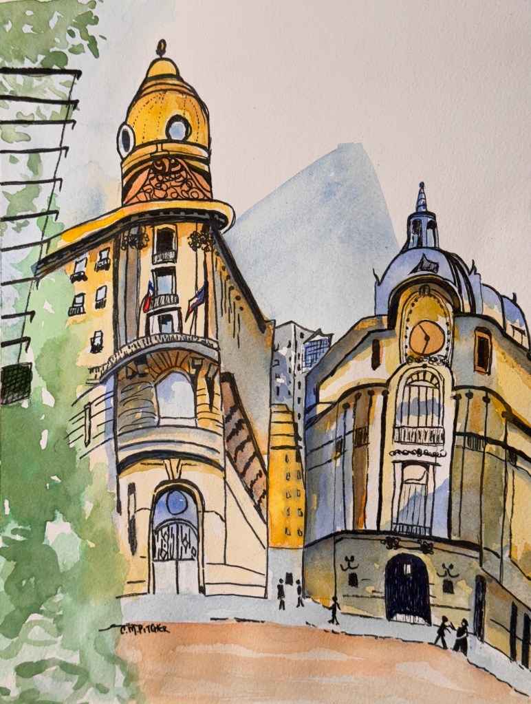 Santiago 12×9 watercolour and ink by Courtenay Pitcher Share this: Click to share on Facebook (Opens in new window) Facebook Click to email a link to a friend (Opens in new window) Email Like Loading...