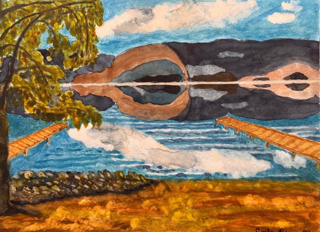 Farris Road Beach View 12×9 original watercolour by Courtenay Pitcher The view from Farris Road Beach in Kelowna, BC Share this: Click to share on Facebook (Opens in new window) Facebook Click to email a link to a friend (Opens in new window) Email Like Loading...