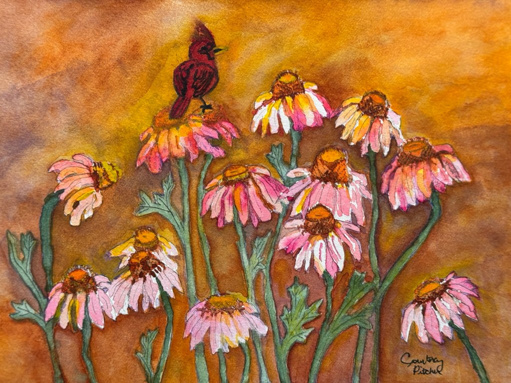 Pink Echinacea Field 12×9 original watercolour by Courtenay Pitcher Share this: Share on Facebook (Opens in new window) Facebook Email a link to a friend (Opens in new window) Email Like Loading...