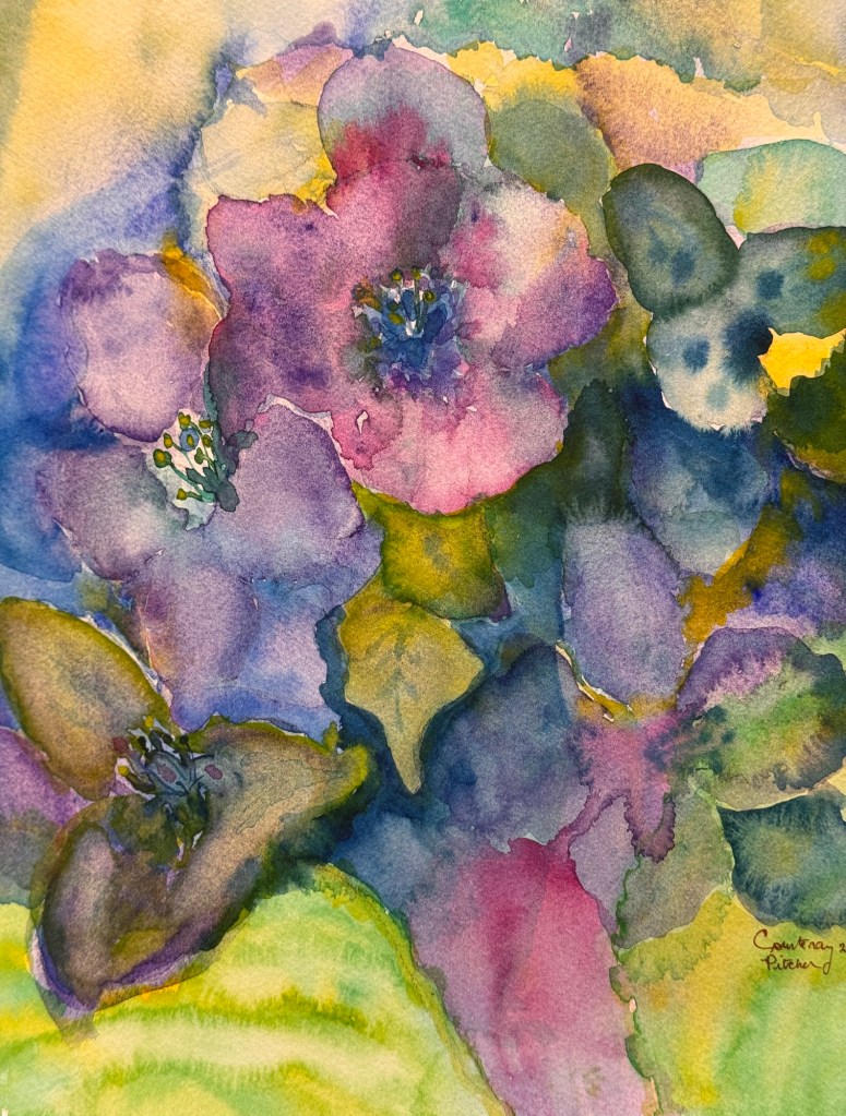 Purple bliss 12×9 original watercolour by Courtenay Pitcher Share this: Share on Facebook (Opens in new window) Facebook Email a link to a friend (Opens in new window) Email Like Loading...