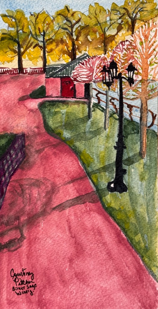 Silver Sage Winery 4.5×9 original watercolour by Courtenay Pitcher Share this: Click to share on Facebook (Opens in new window) Facebook Click to email a link to a friend (Opens in new window) Email Like Loading...