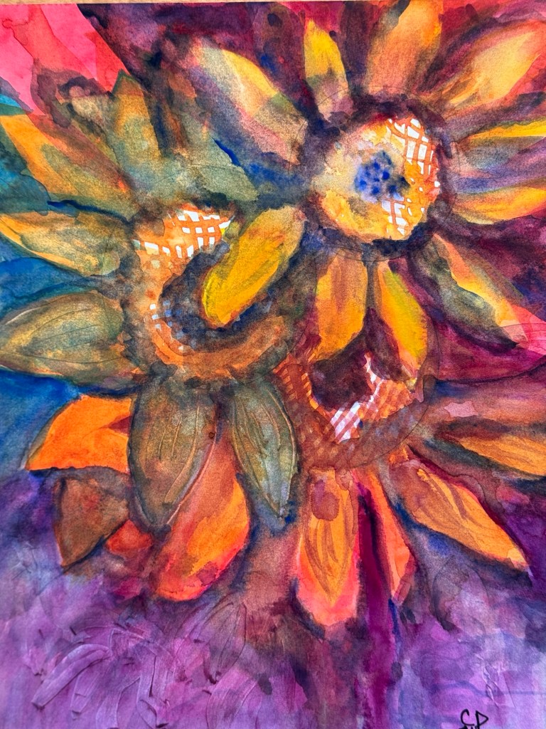 Sunflowers 12×9 original watercolour by Courtenay Pitcher Share this: Click to share on Facebook (Opens in new window) Facebook Click to email a link to a friend (Opens in new window) Email Like Loading...