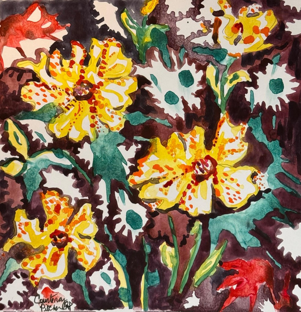 Pretty flowers on Yupo Share this: Click to share on Facebook (Opens in new window) Facebook Click to email a link to a friend (Opens in new window) Email Like Loading...
